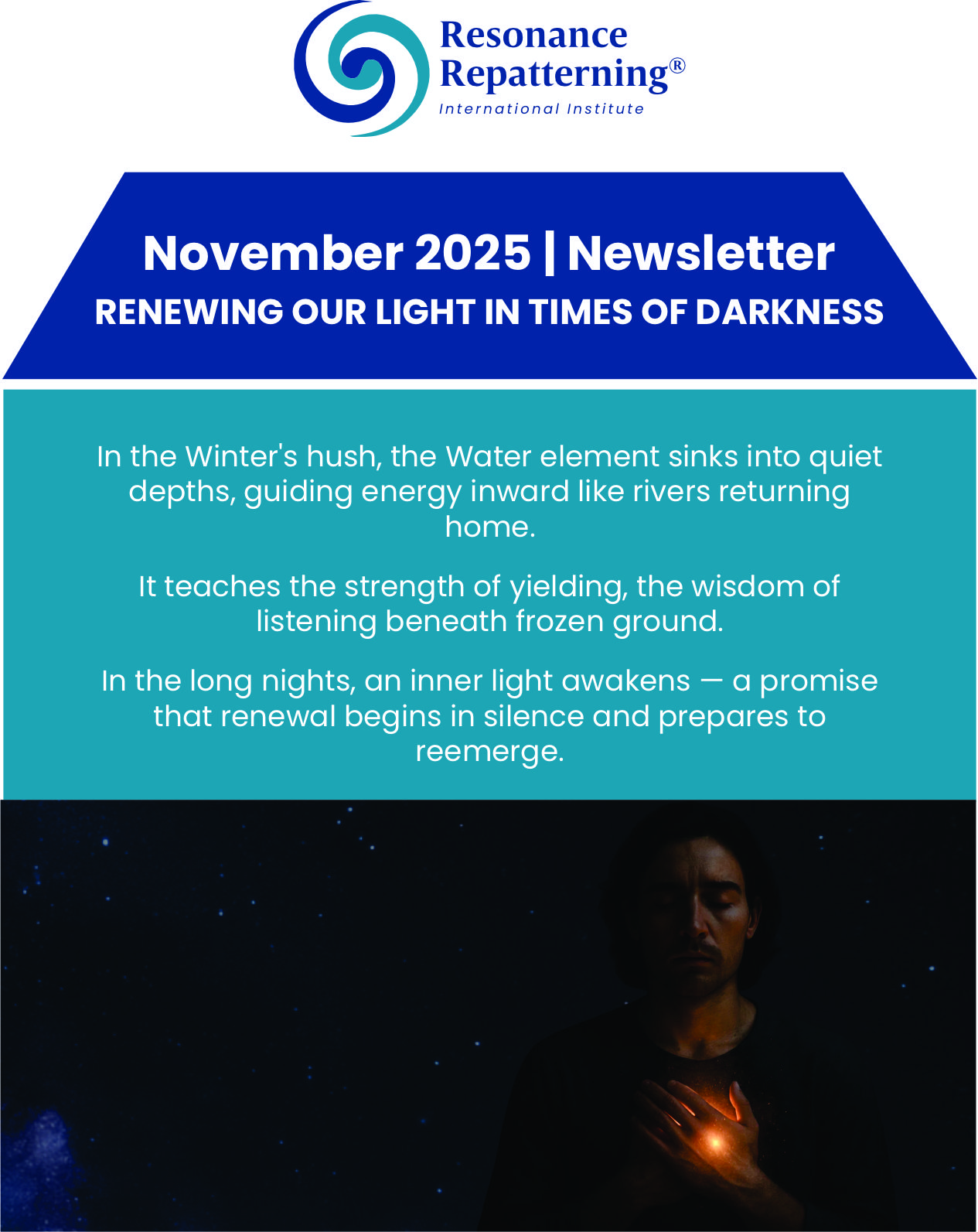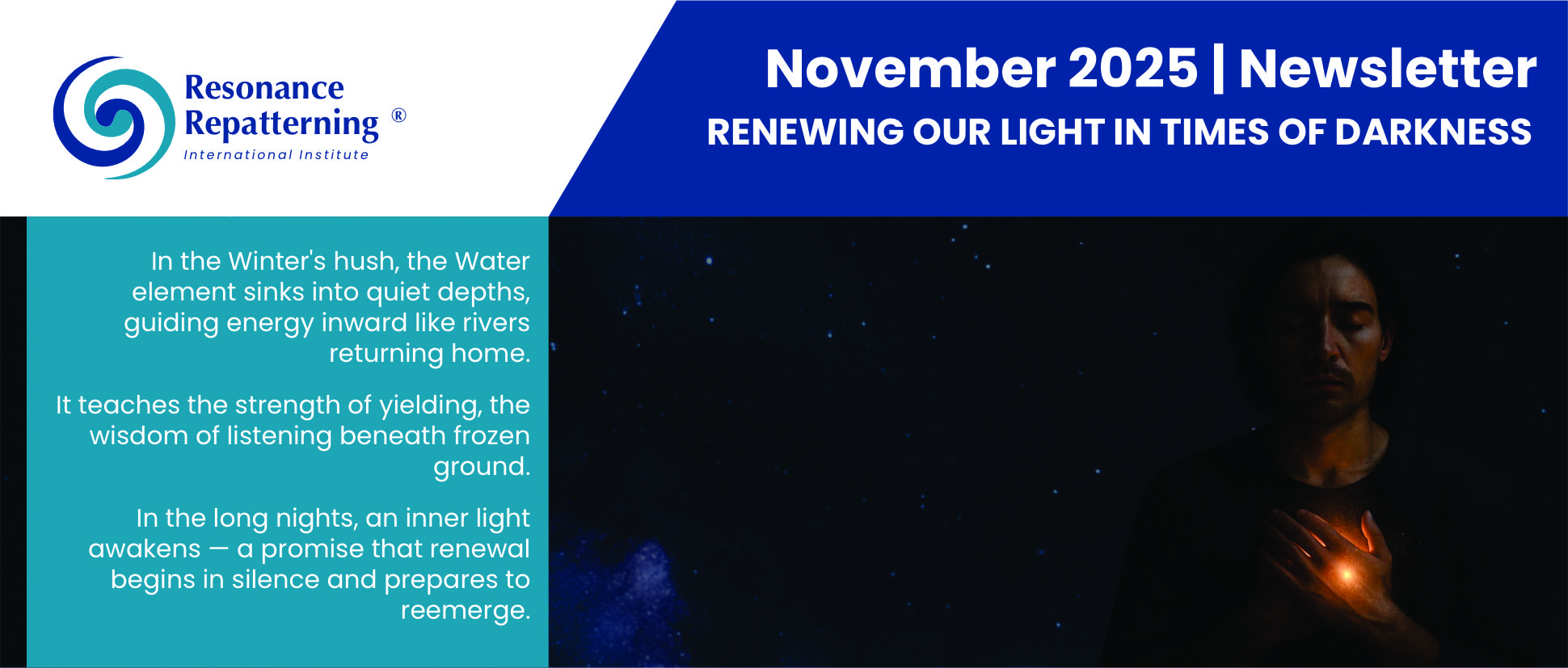 It is my pleasure to welcome you to the November edition of the International Institute of Resonance Repatterning newsletter.